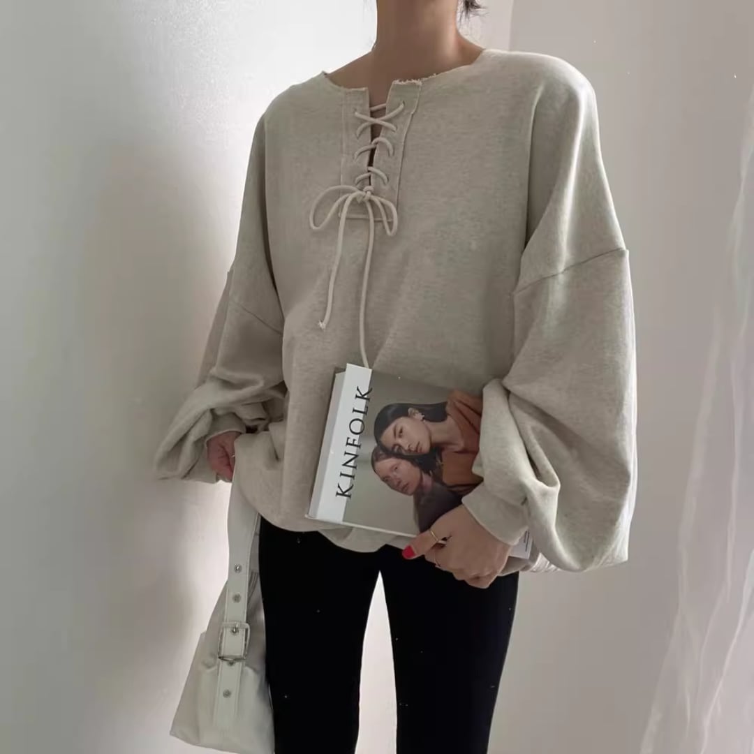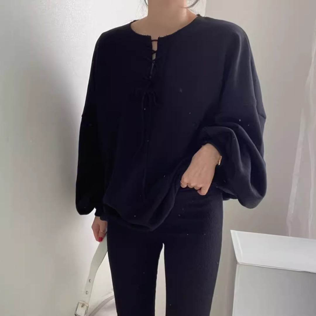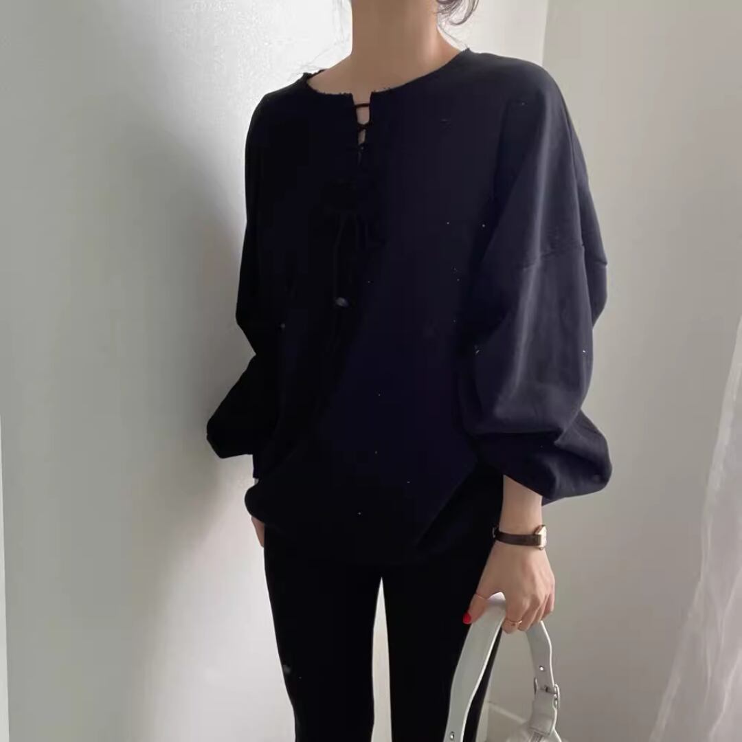lazy round neck tie design loose plus size casual lantern long sleeve(SN031)