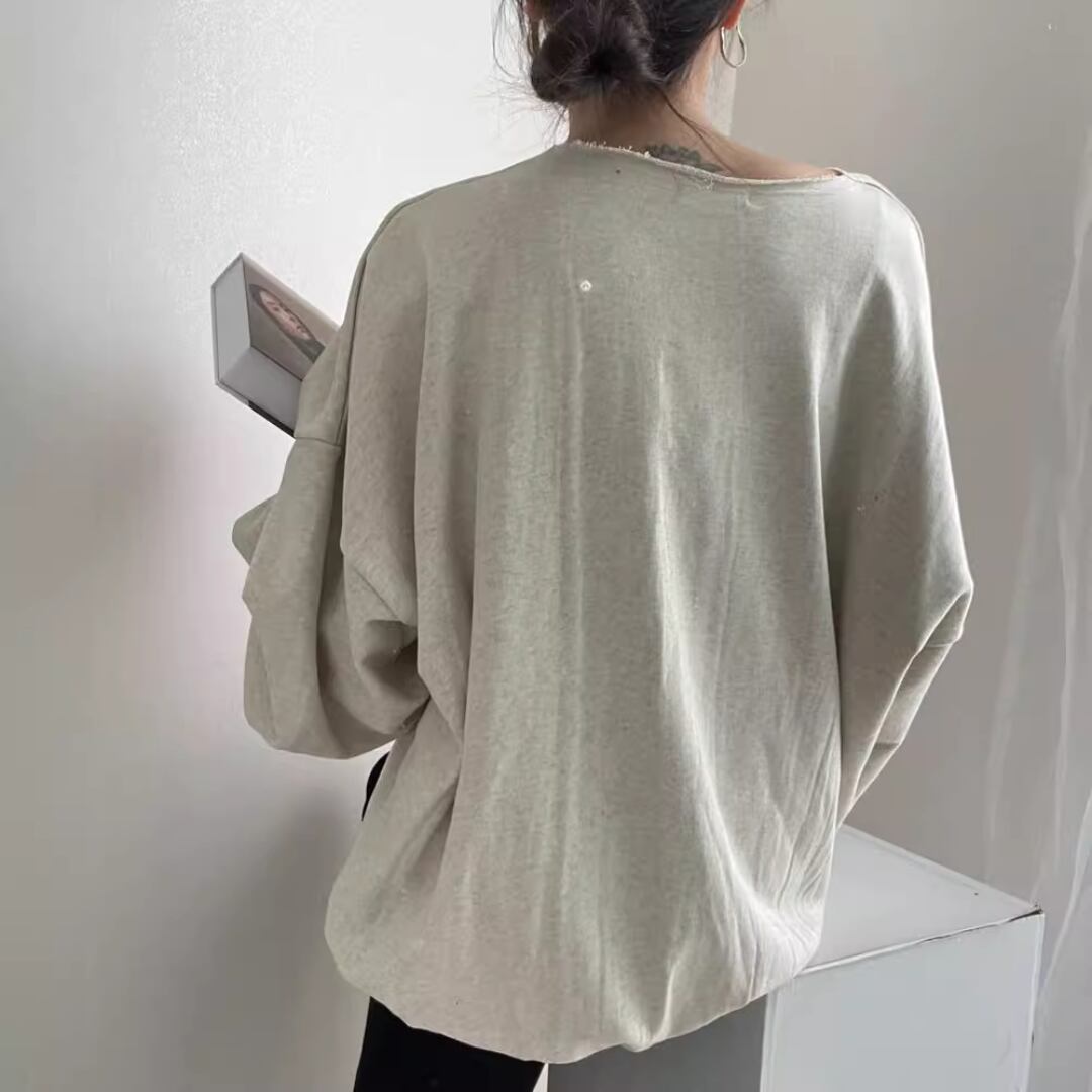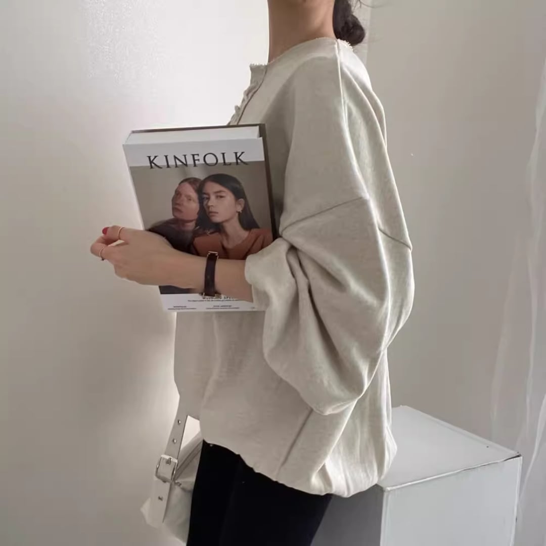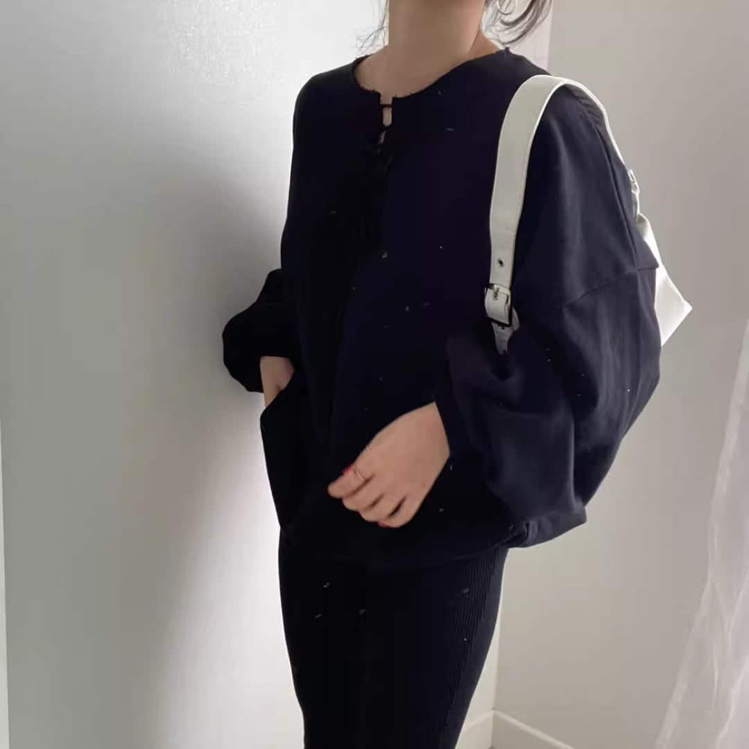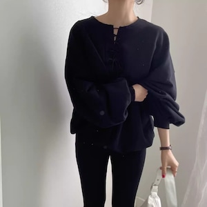 lazy round neck tie design loose plus size casual lantern long sleeve(SN031)