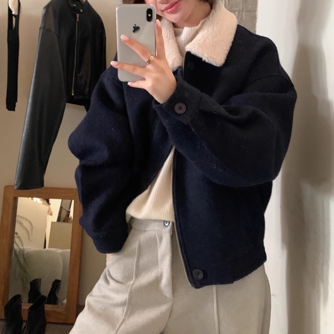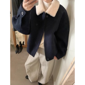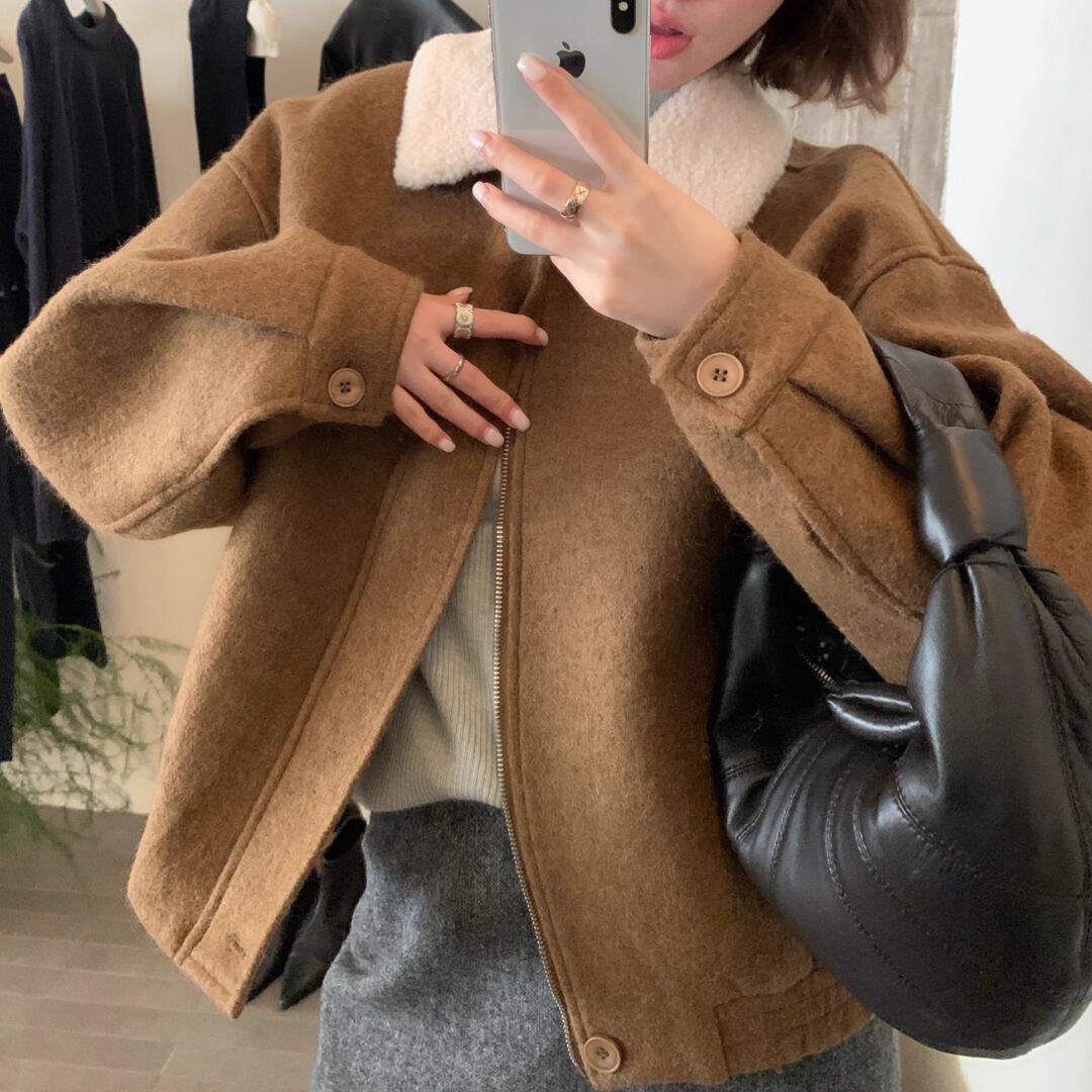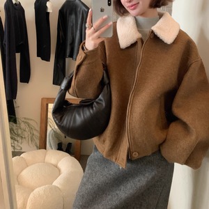 patchwork lamb wool collar versatile warm wool coat(SN046)