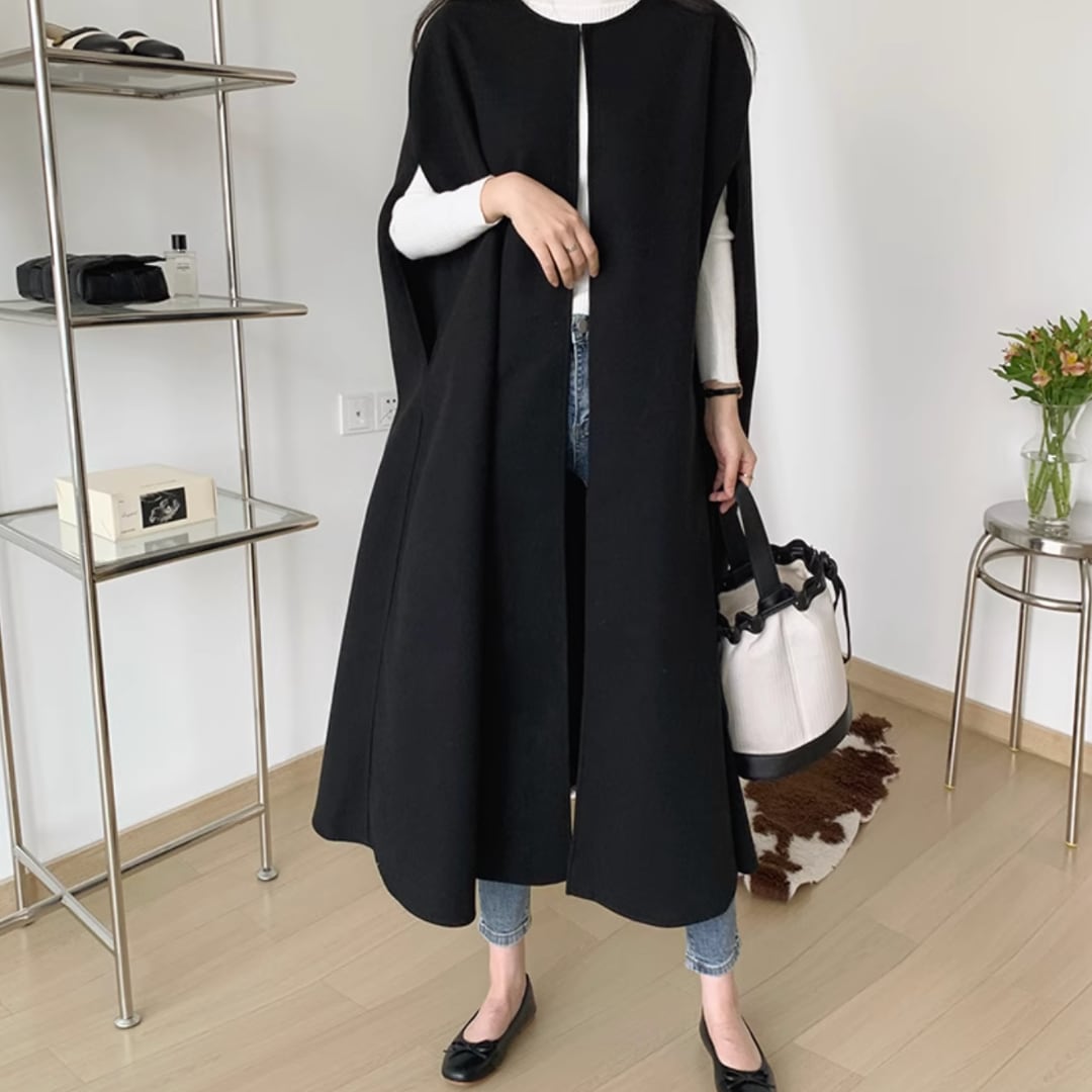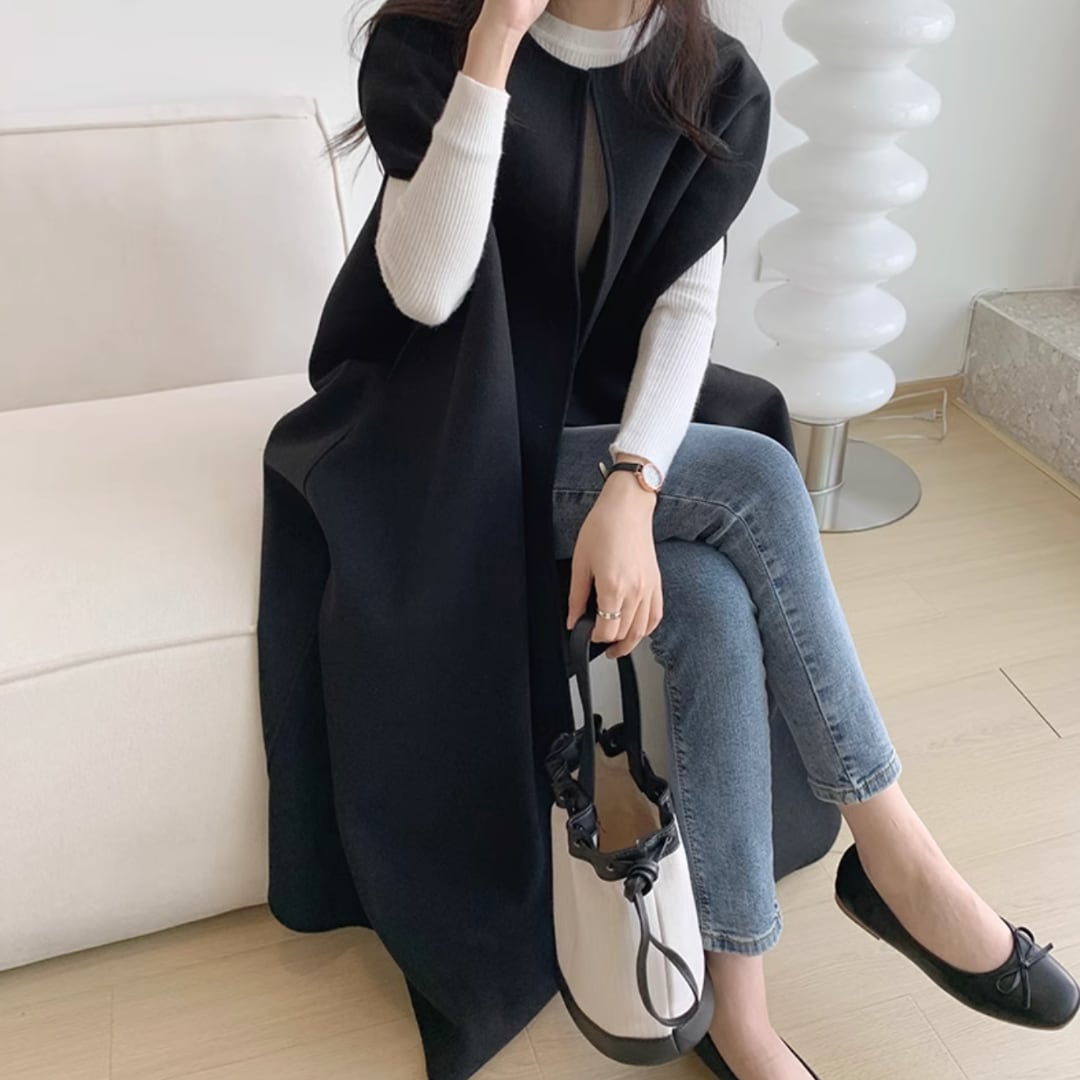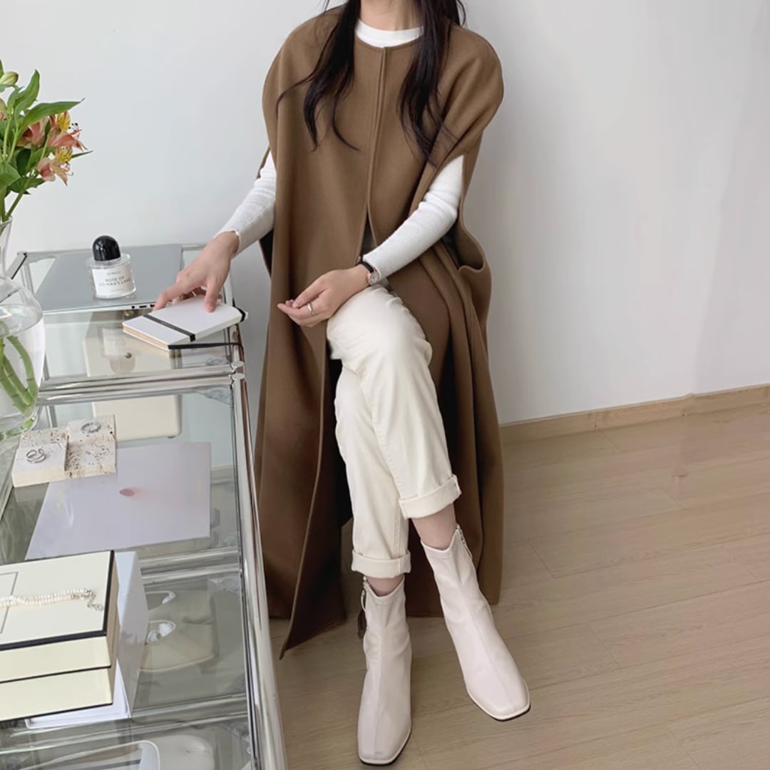 solid color mid-length wool vest coat(SN048)