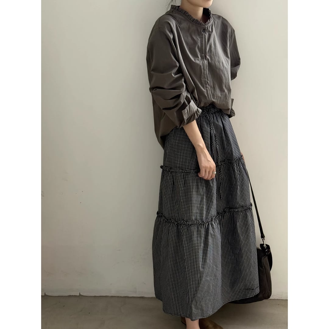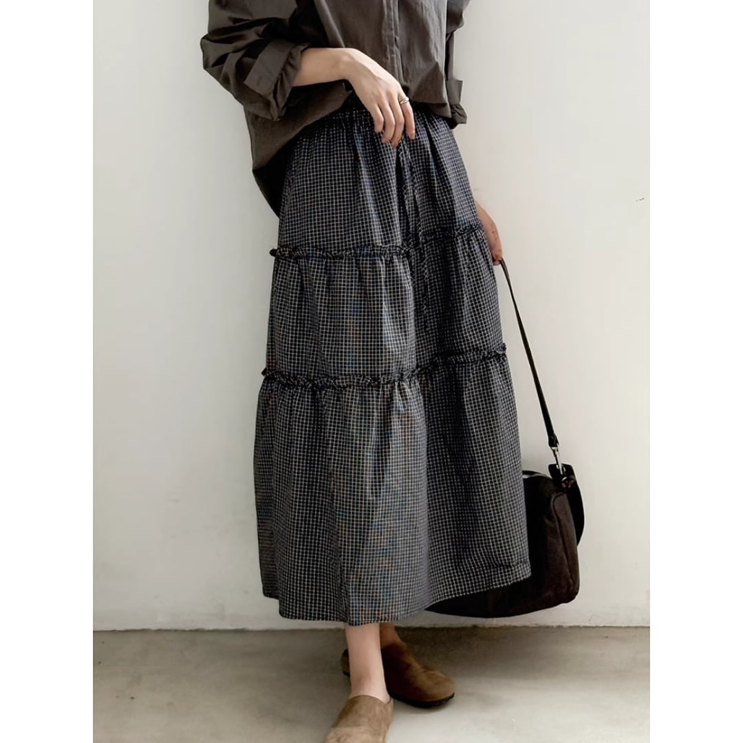 Lazy Style Plaid Pleated Midi Skirt (SN094)
