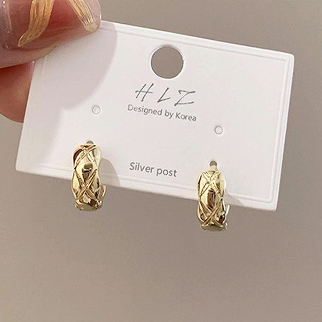 Elegant diamond-patterned plain hoop earrings(SN182)