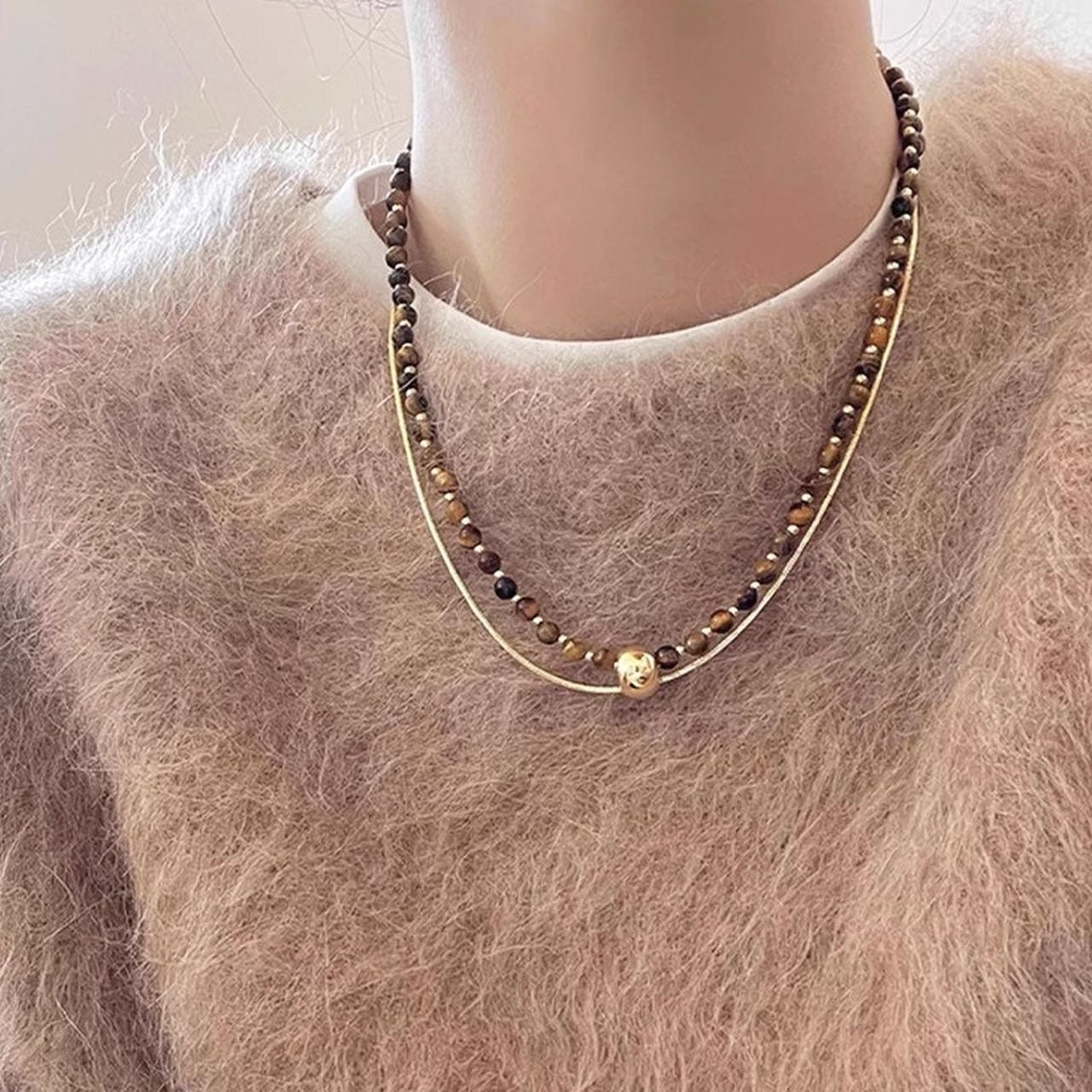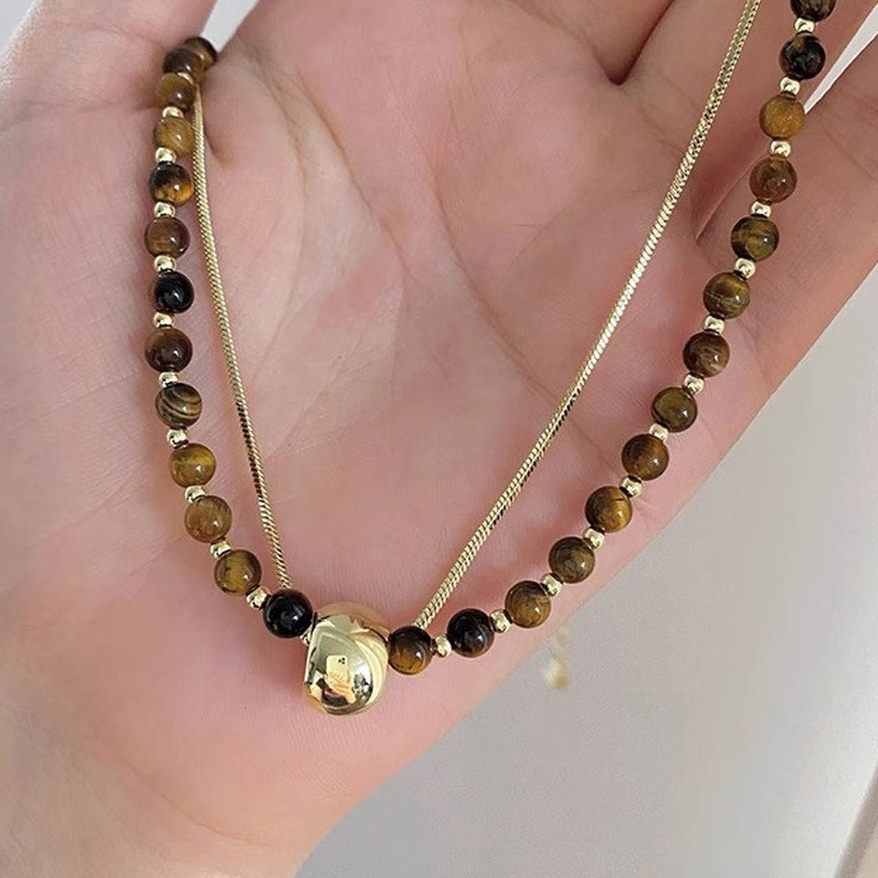 Tiger Eye Double Layer Necklace(SN191)