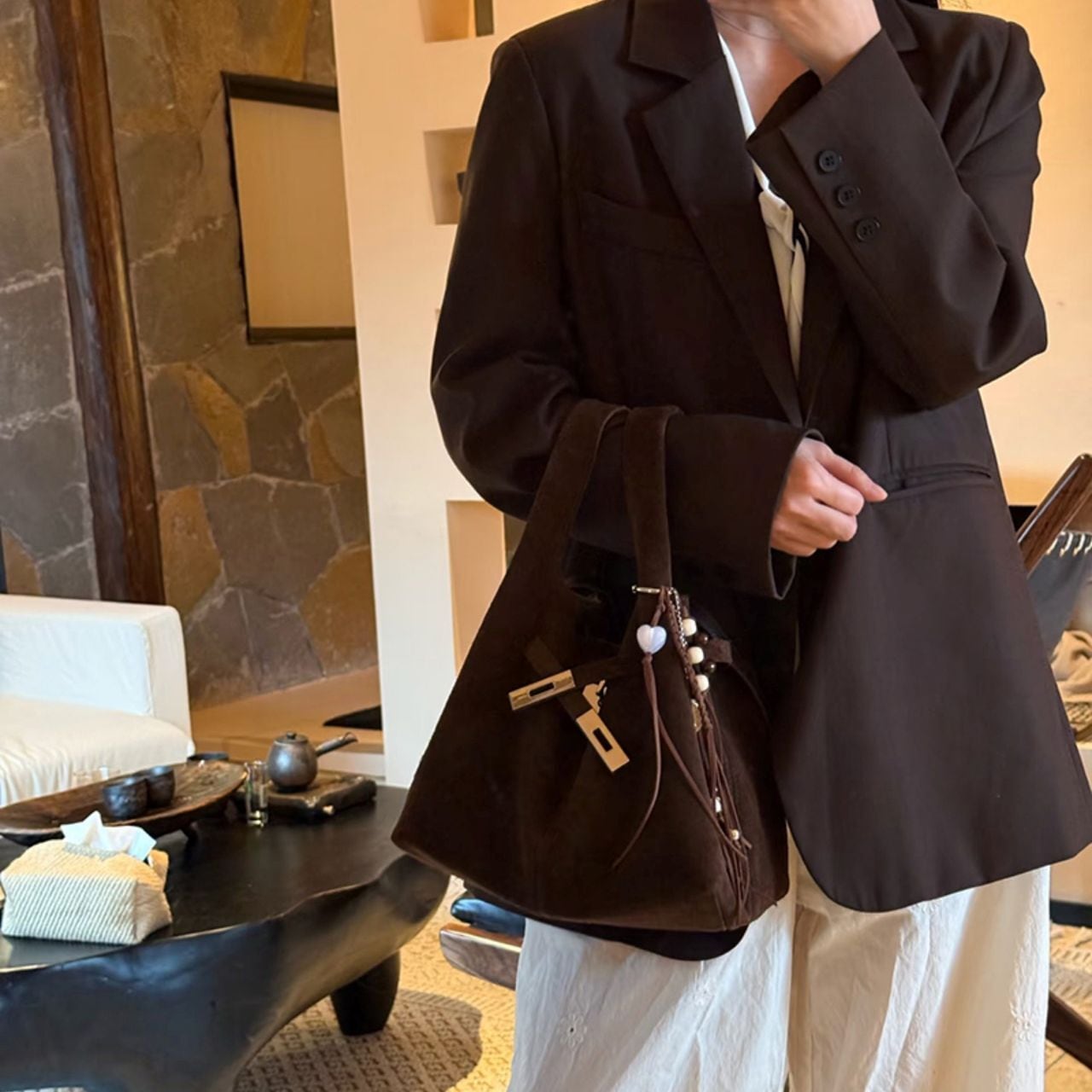 Suede tote bag(SN197)
