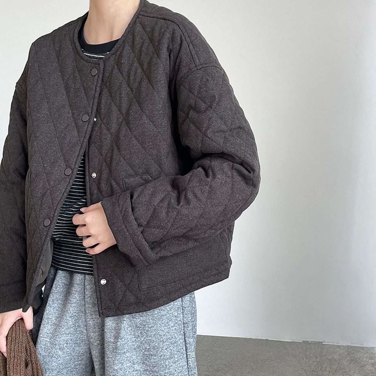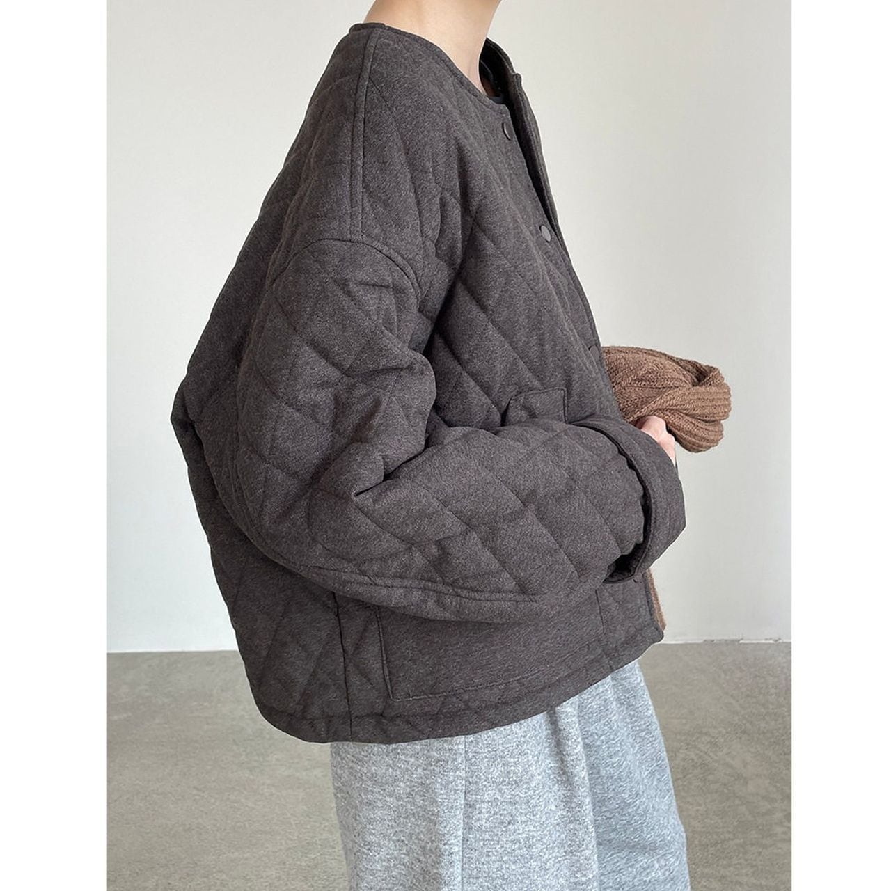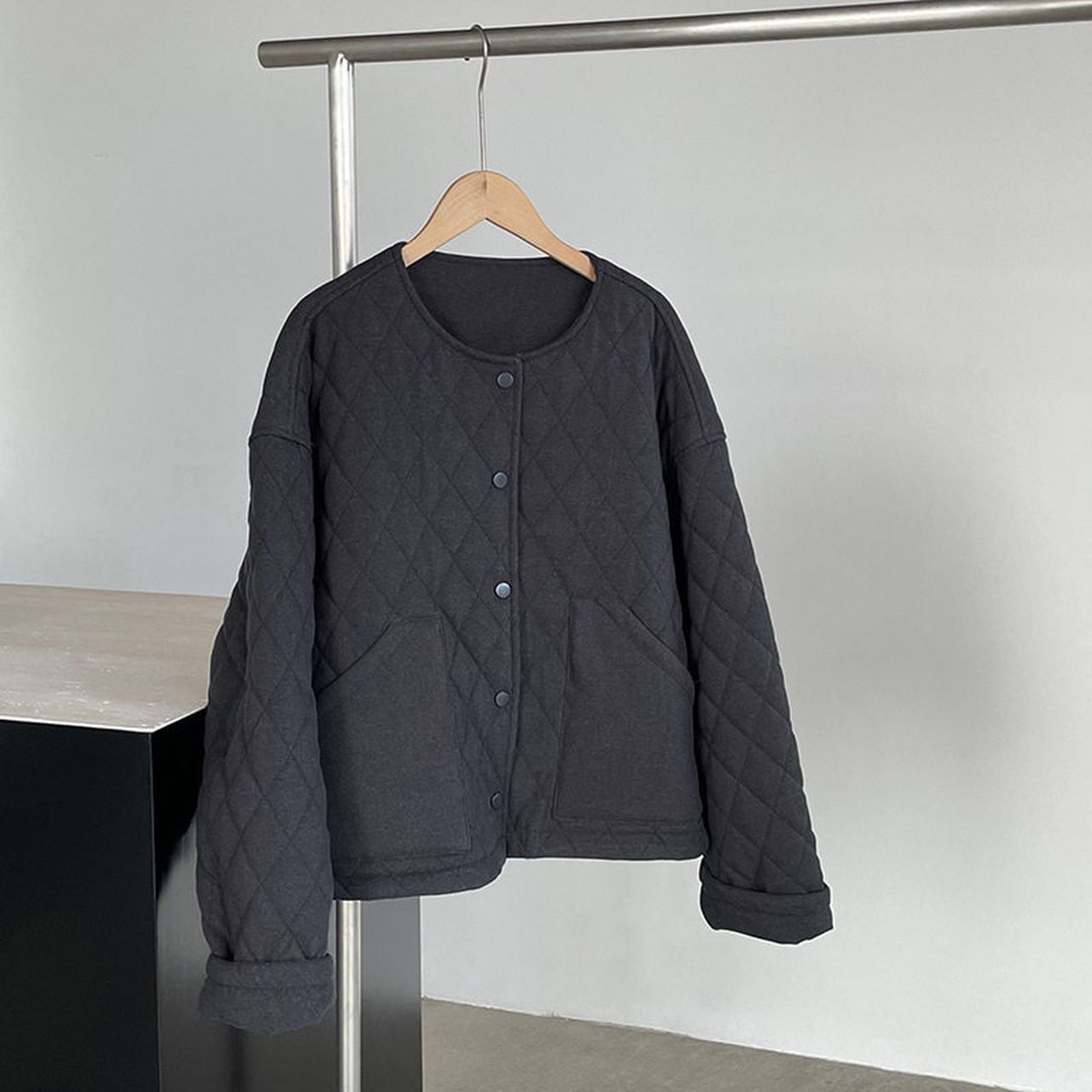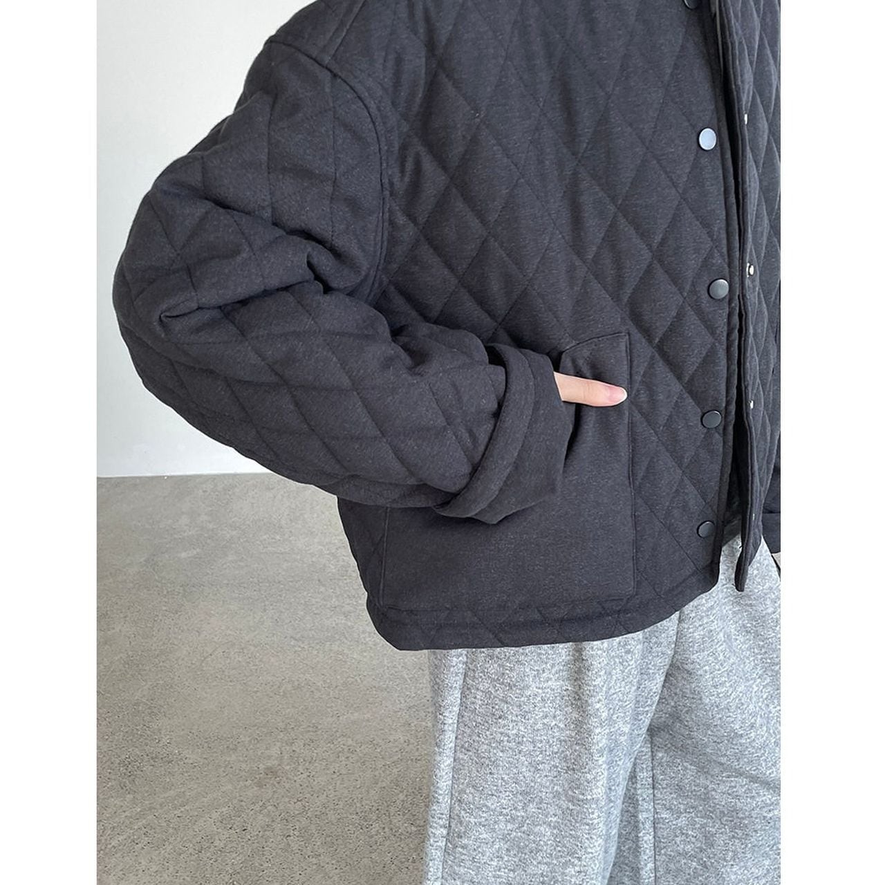 Diamond pattern round neck quilted jacket(SN202)