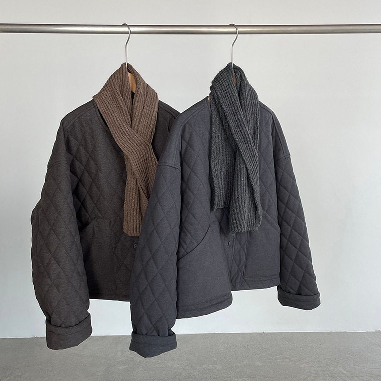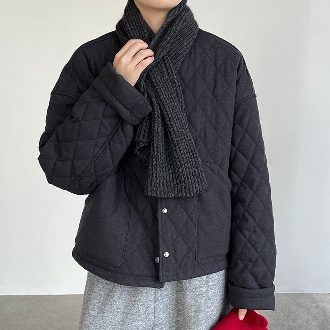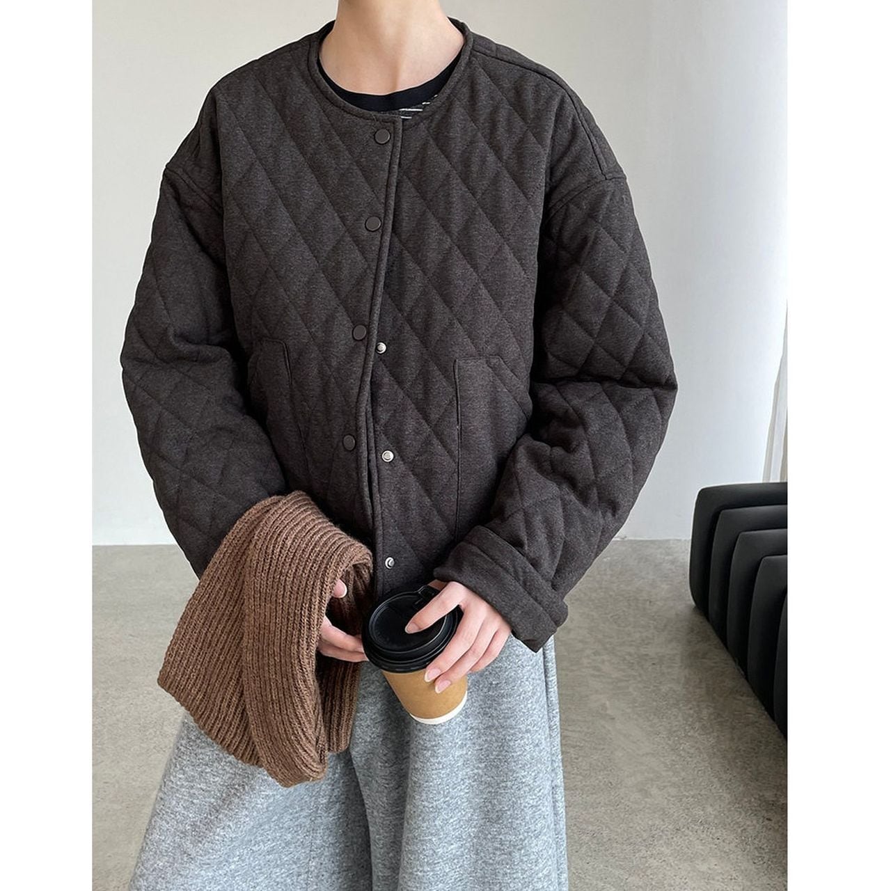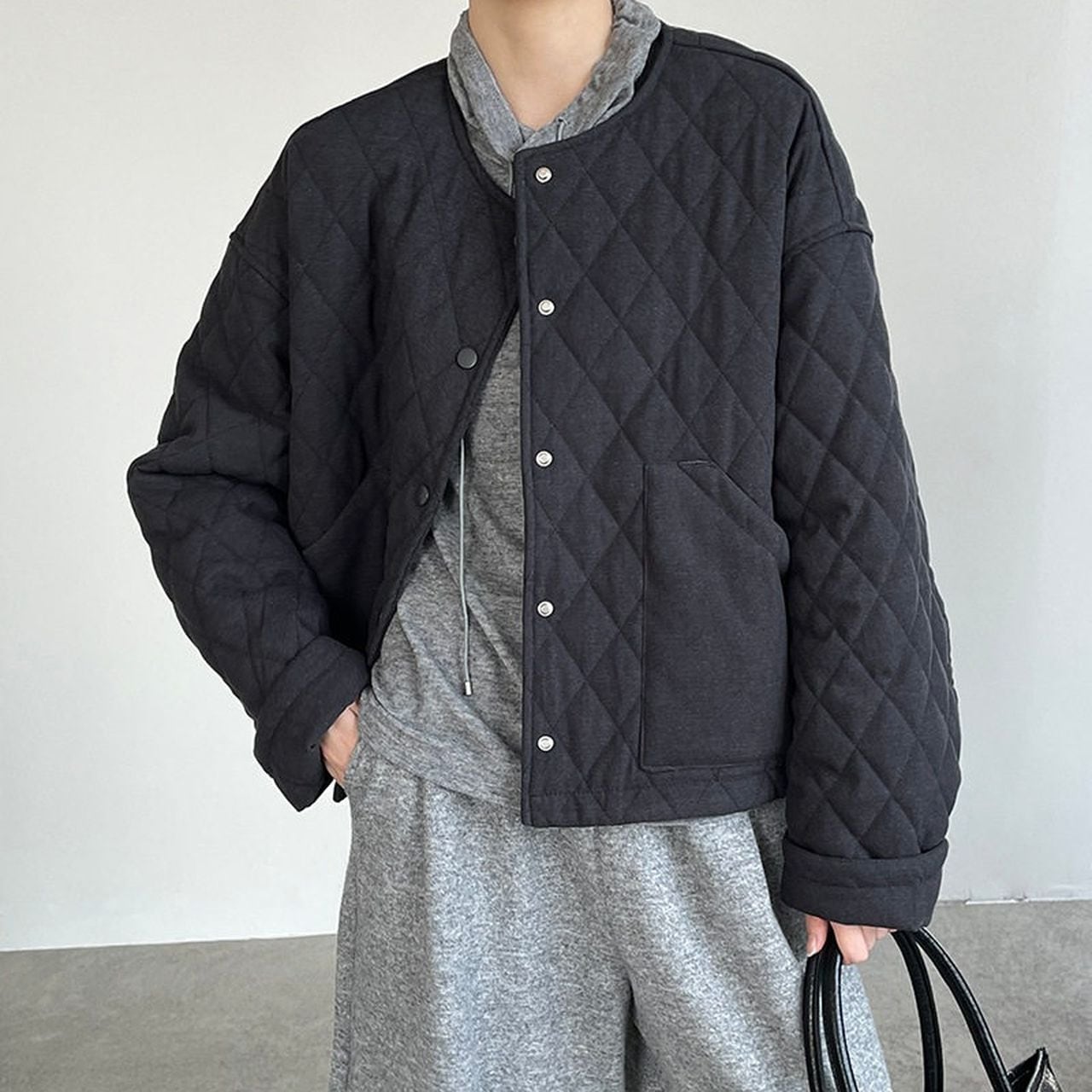 Diamond pattern round neck quilted jacket(SN202)