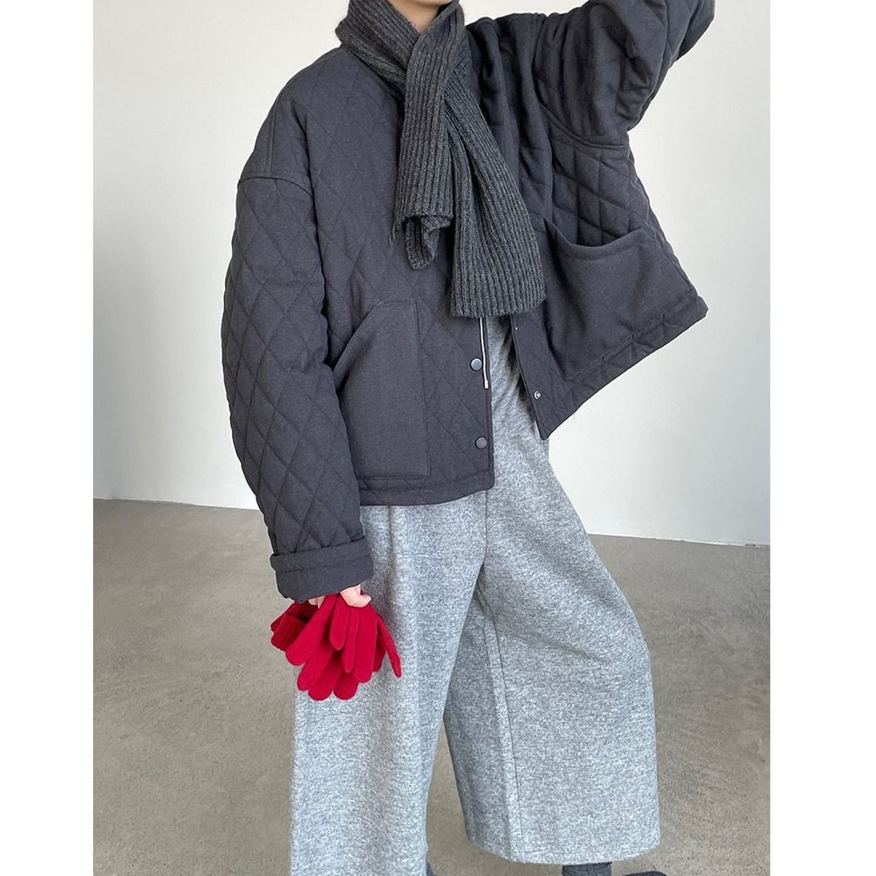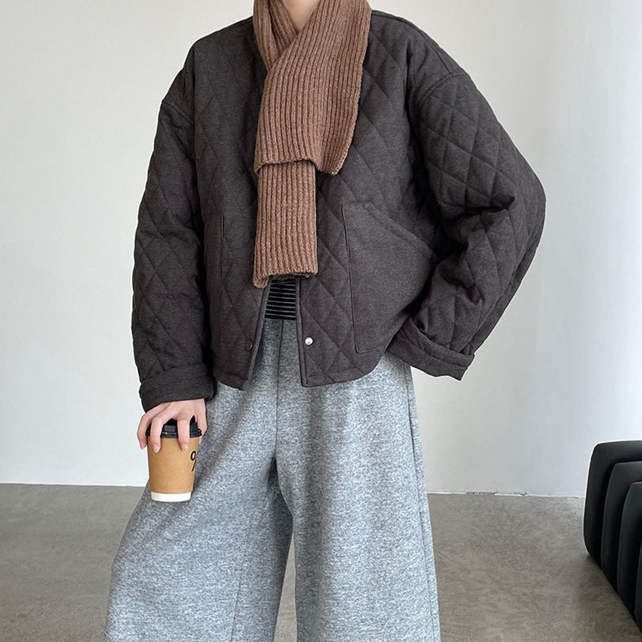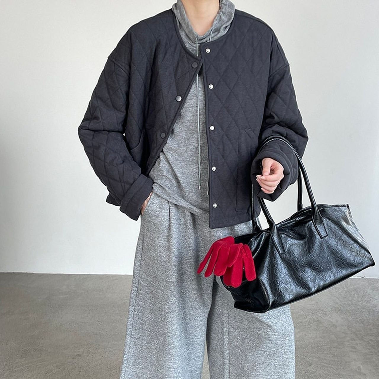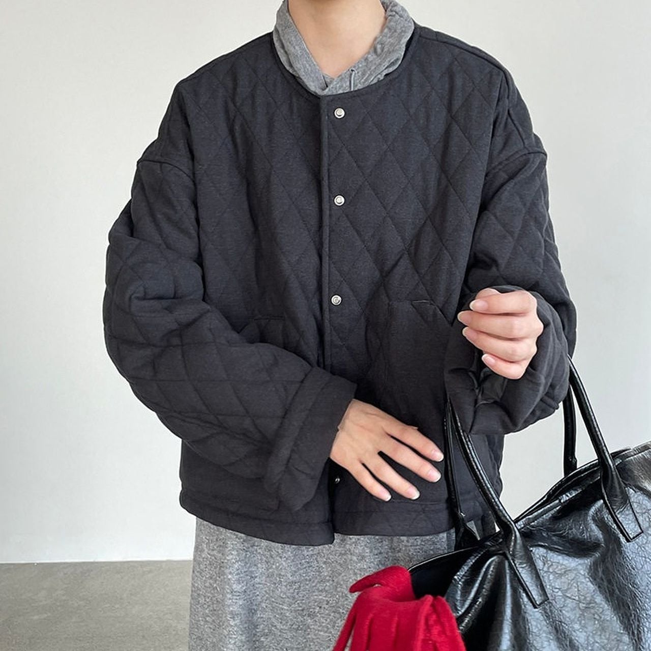 Diamond pattern round neck quilted jacket(SN202)