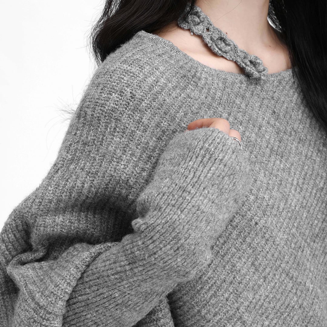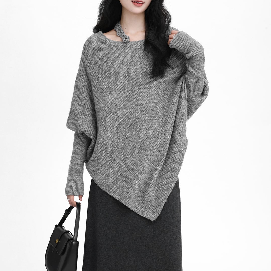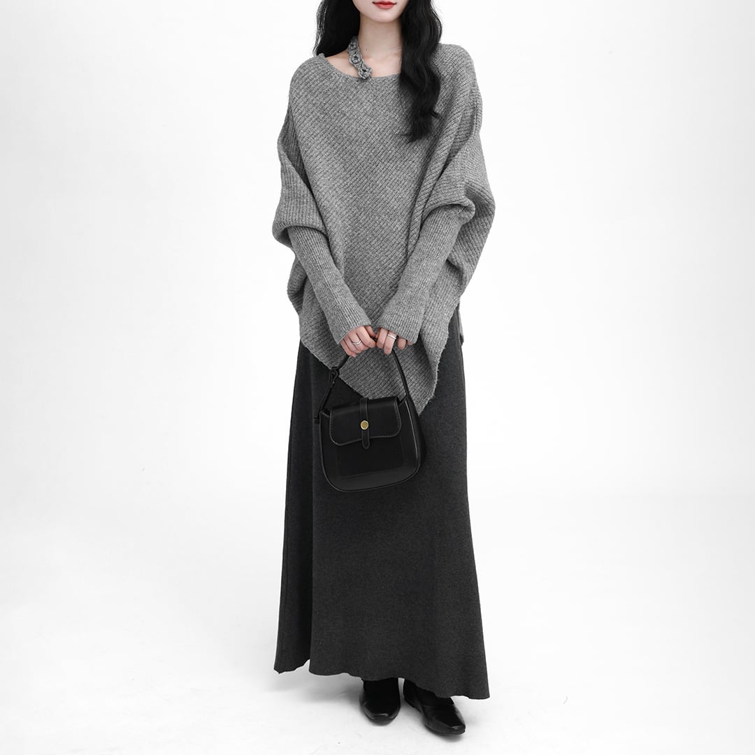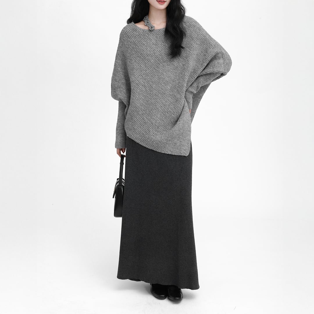 Gray loose casual long-sleeved knit sweater (SN236)