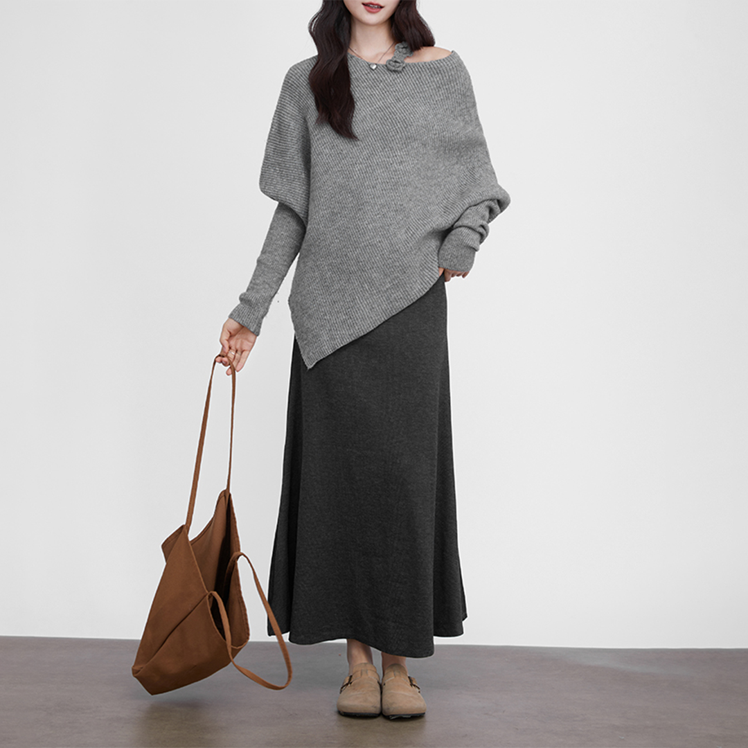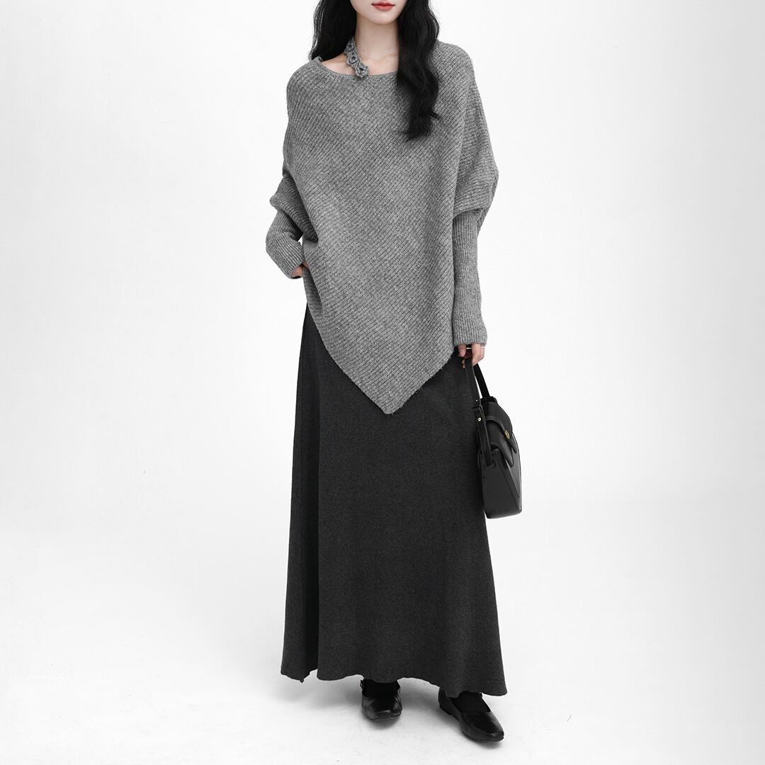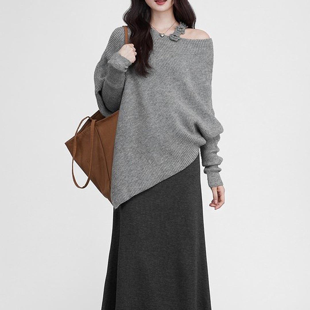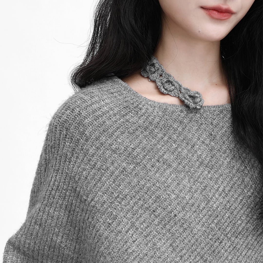 Gray loose casual long-sleeved knit sweater (SN236)