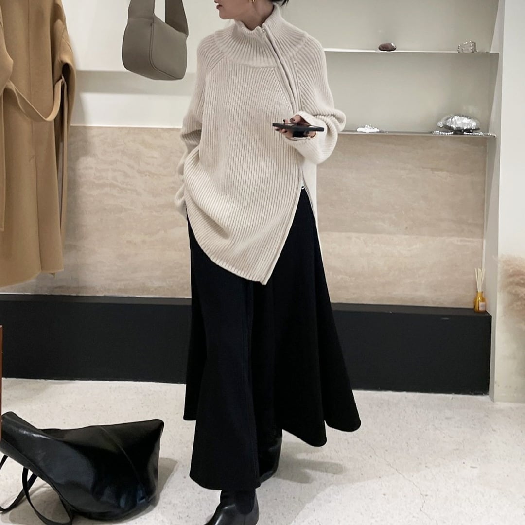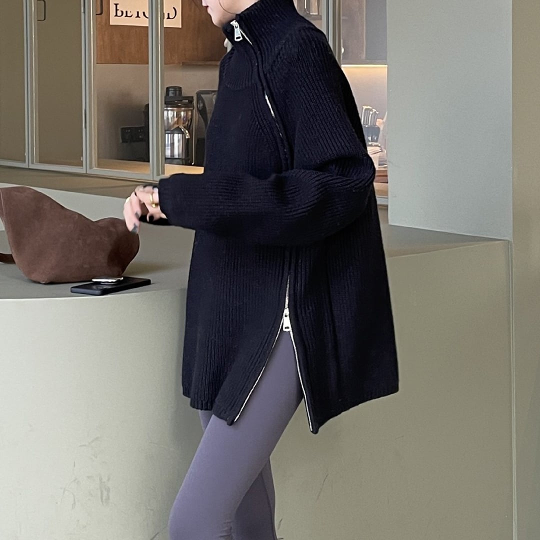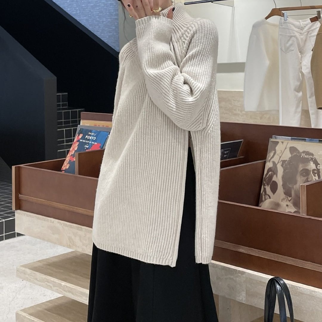 2-way side double zip wool turtleneck sweater (SN238)