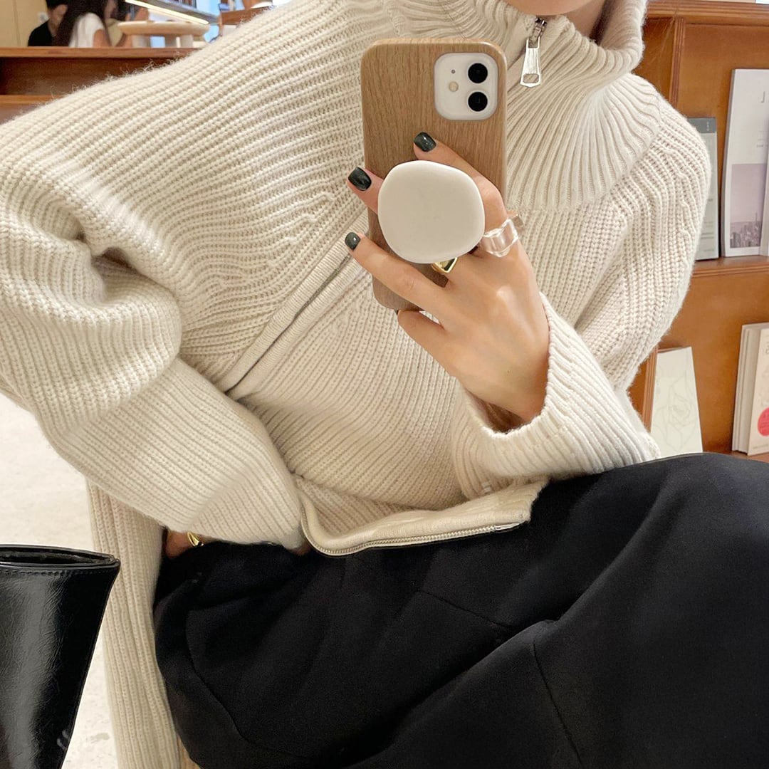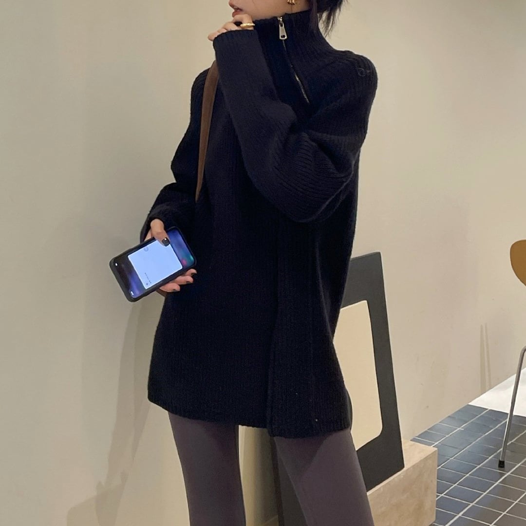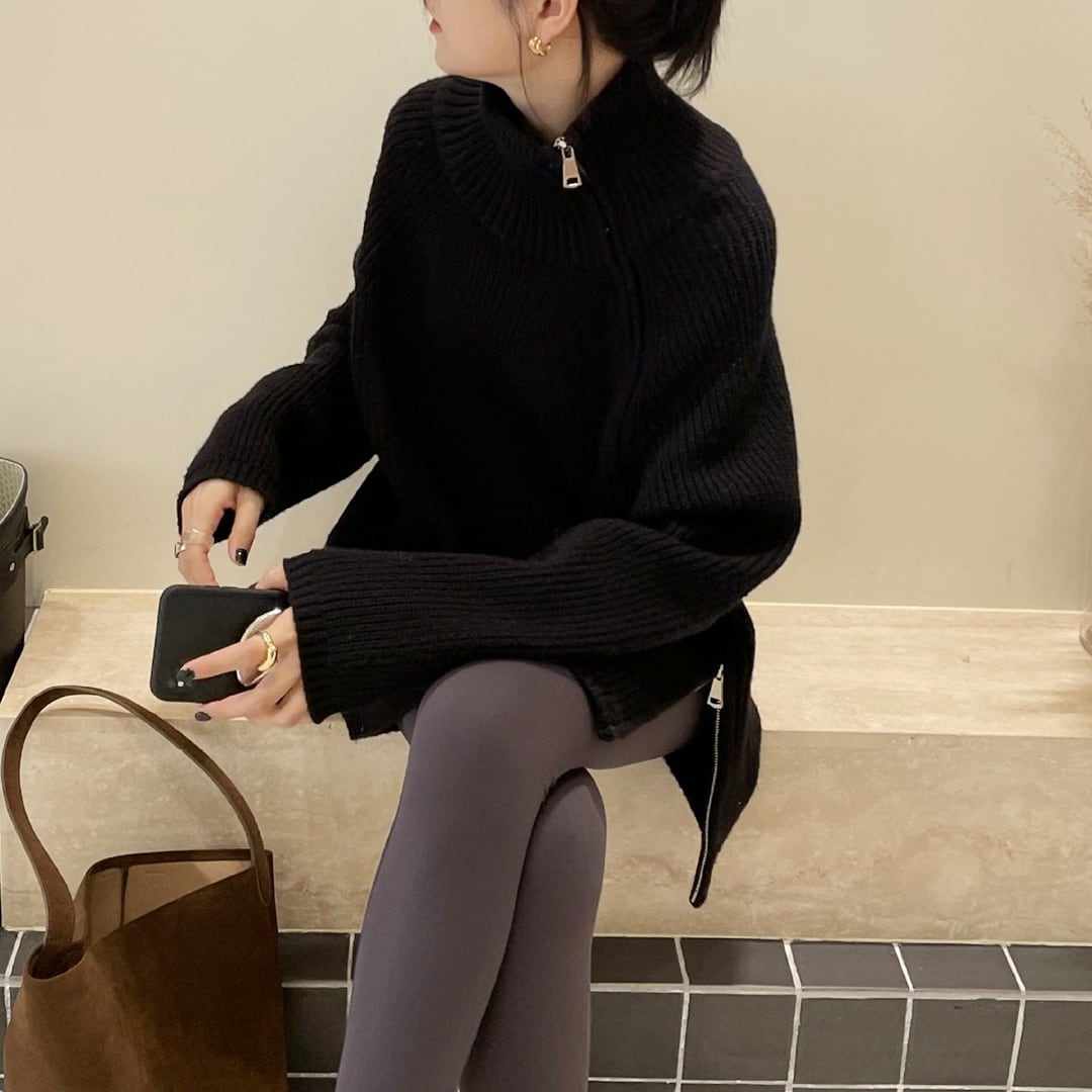 2-way side double zip wool turtleneck sweater (SN238)