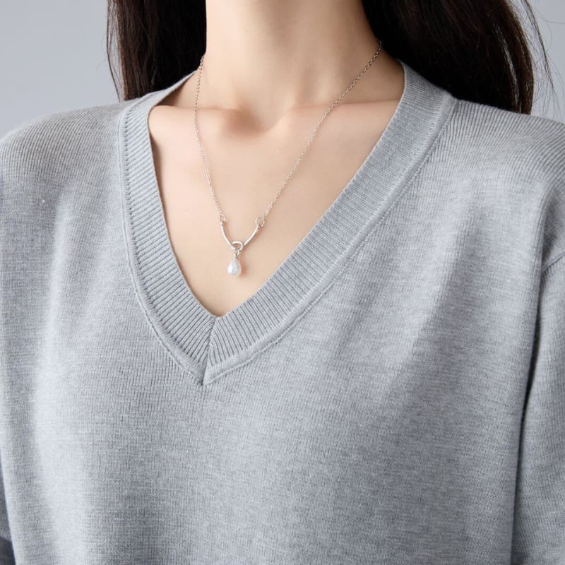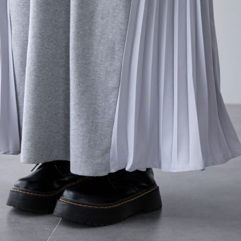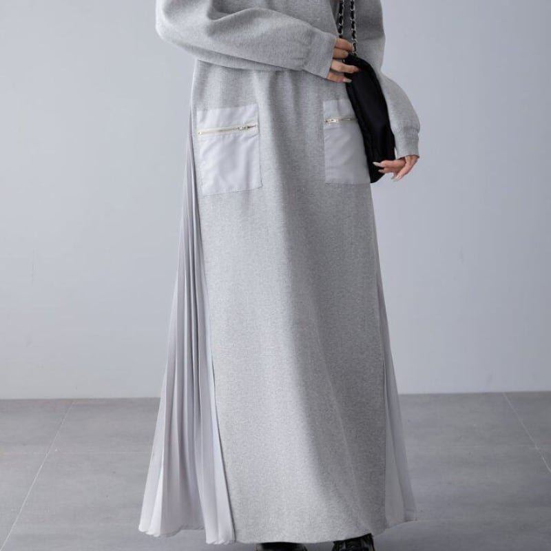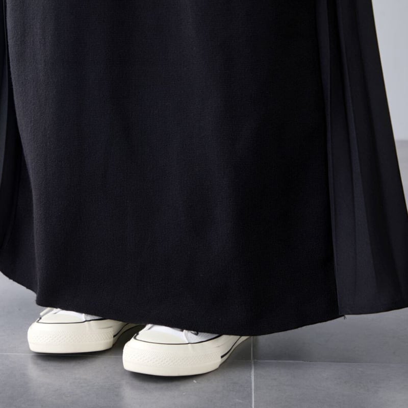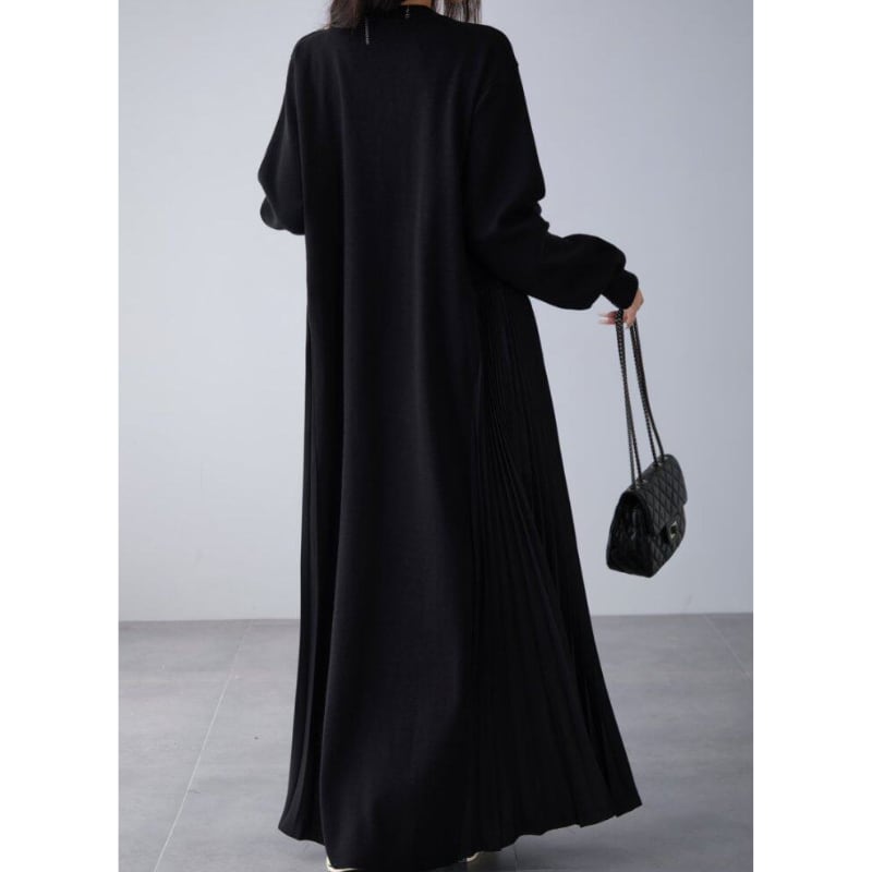 Loose V‑neck dress with side pleated panels and knit splicing (SN351)